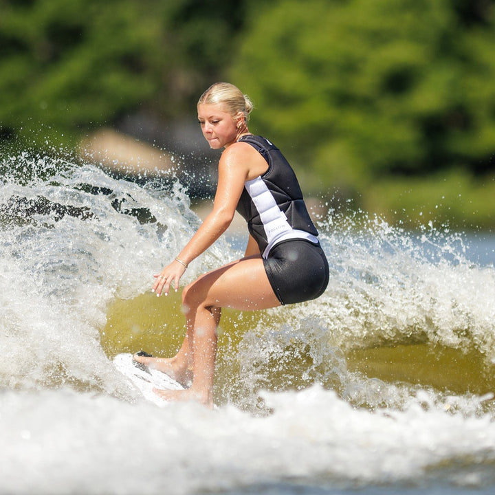 Dual-Layer Stretch Neoprene – Premium, quick-dry fabric reduces water absorption so your wake vest stays light all session.