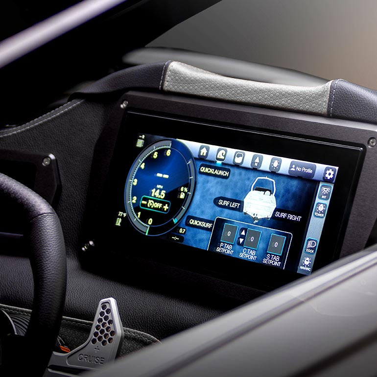 Take command with the intuitive Revo SxS touchscreen dash that allows you to seamlessly adjust everything from wave size to comfort settings, crafting the perfect ride for any condition. The innovative Revo screen provides real-time fuel efficiency data, showcasing how our boat remains 50% more fuel-efficient than its competitors, allowing for longer outings with fewer interruptions.